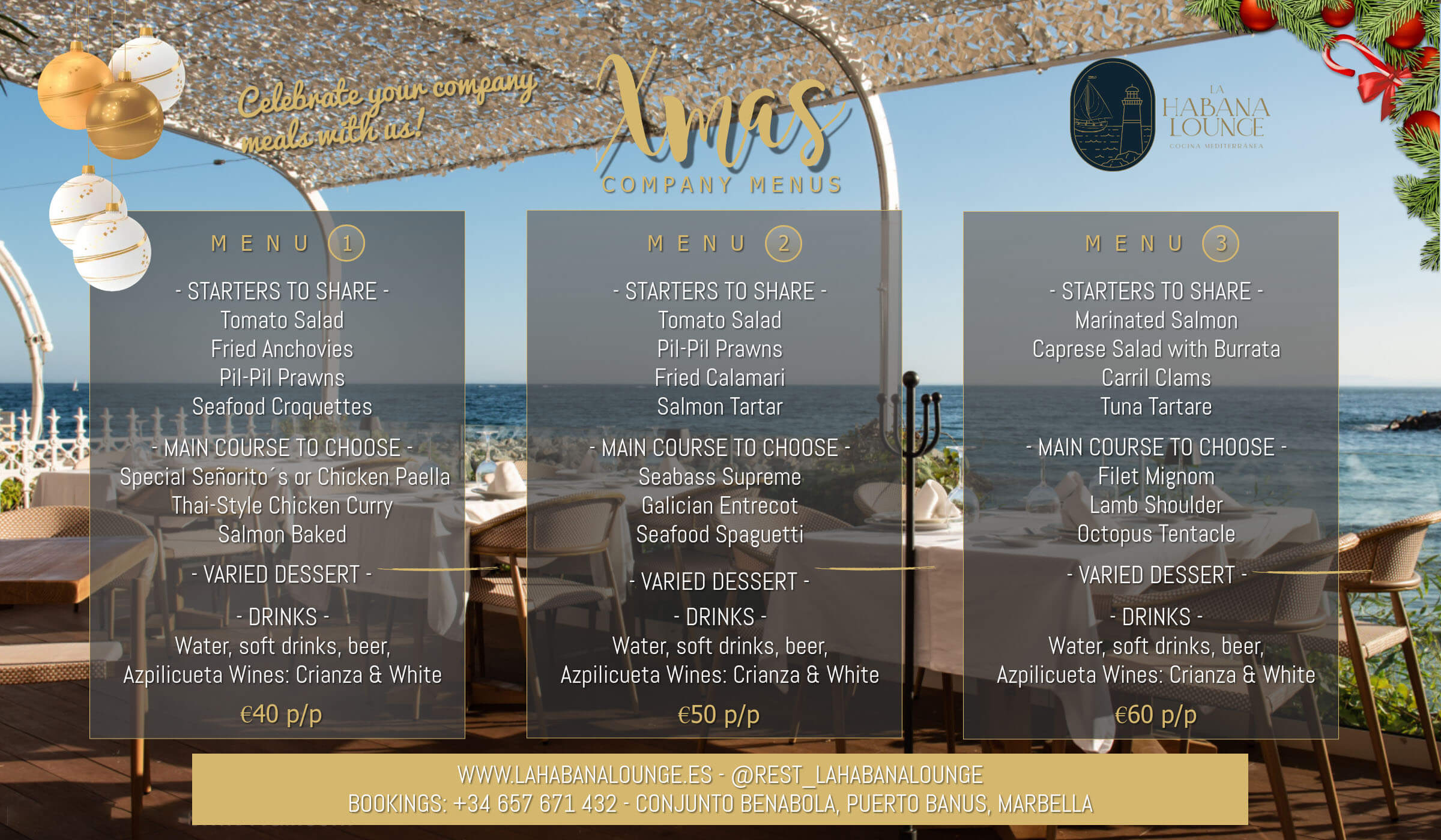 In La Habana Lounge we have three different menus with starters to share, main course to choose from, dessert and drinks…
