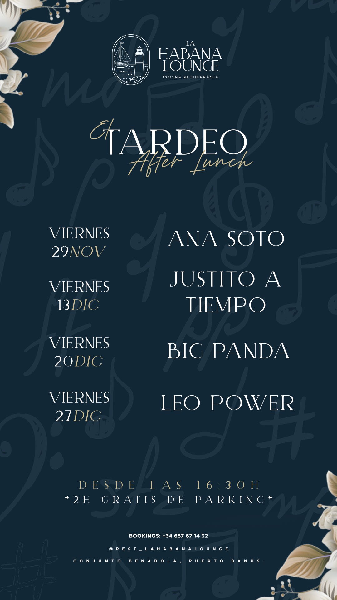 Where: La Habana Lounge, Conjunto Benabola, Puerto Banús. Free Parking at Mathilda Parking.